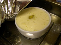 | Place the banana mixture into four ramekins or heat proof serving bowls. Mix the egg yolks, cream, vanilla and sugar in a bowl and whisk them together. Fill the ramekins with the egg mixture. | ![]() |
