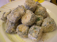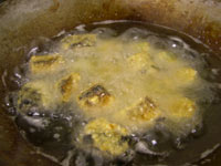 Heat some oil to about 180°C (356°F) in wok or an electric deep fat fryer. Deep fry the cubes until they are golden brown. Drain on kitchen paper and serve hot with Japanese mayonnaise or ordinary mayonnaise. |