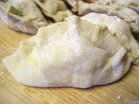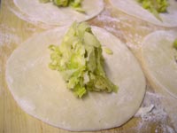 | Place some of the cooled filling on each circle of dough. The filling must be cold. Brush the edges with a little water to help seal the pastry. | ![]() |