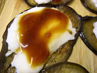 Ingredients 12 slices of aubergine oil for frying 100g (4oz) mozzarella 4 tbsp bbq sauce breadcrumbs 1 egg 100ml (½cup) milk flour for dipping Bbq (Tonkatsu) sauce 30ml (2tbsp) tomato sauce 20ml (1tbsp) vegetarian worcester sauce or Hendersons or HP brown sauce 30ml (2tbsp) mirin 20ml (2tbsp) sake 20ml (2tbsp) sesame oil 1 thumb of fresh ginger, grated 20ml (2tbsp) soy sauce 2 teaspoons white sugar |
