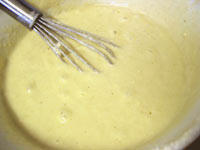 Whisk together the self raising flour, ground rice, vanilla, caster sugar, soy cream and water to form a thick batter. This batter will keep several days in the fridge. | ![]() |