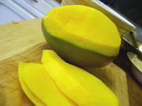 | Peel you mango or whatever fruit you wish to use and cut it into slices. | ![]() |