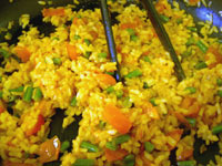 For the filling 80g (3oz) cooked rice 1 small onion knob of butter 50g (2oz) French beans or garden peas 2 tomatoes 2 tbsp tomato ketchup 1 tbsp soy sauce For the omelettes 6 eggs 1 teaspoon salt little butter little oil |