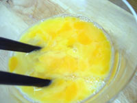 | Place 3 of the eggs in a bowl with some salt and just loosen them up. Don't whisk them together completely just give them a few swirls with your fork. | ![]() |