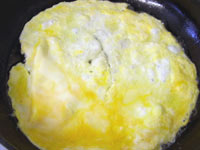 the rice filling on one side of the omelette and roll the other side over it with a spatula.