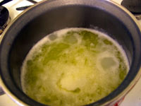 First of all place the butter and water in a small saucepan and simmer the mixture to melt the butter. Add the pinch of salt. | ![]() |