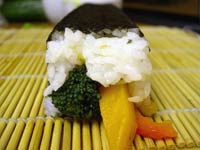 This is a much chunkier sushi and included it so I could illustrate the use of a sushi mat to create different shapes. You could use any of the fillings in this chapter if you don't want to use the ones I have used here