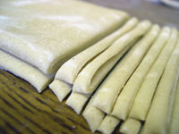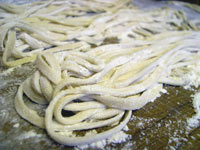 | After every few cuts unfold the noodles, dowse them in a little flour, and set them to one side. Keep going until the dough is finished. | ![]() |