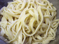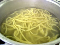 | To cook the noodles bring a large pot of water to the boil and plunge them in. When they float to the surface count 30 seconds and they are done. If you want them for a salad cool them under cold running water and drain them. Otherwise serve them straight away after draining. | ![]() |